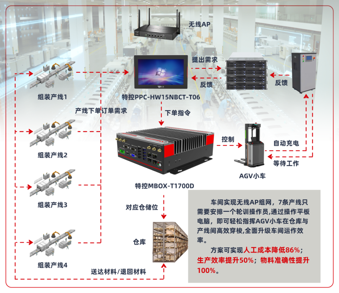 在日均處理百萬件包裹的智能倉庫,特控邊緣計算設備與工業平板構建起 “數字中樞”。MBOX-T1700D邊緣計算控制器化身 “智慧大腦”,通過毫秒級數據處理能力,實時分析包裹重量、尺寸與目的地信息,動態規劃最優分揀路徑。